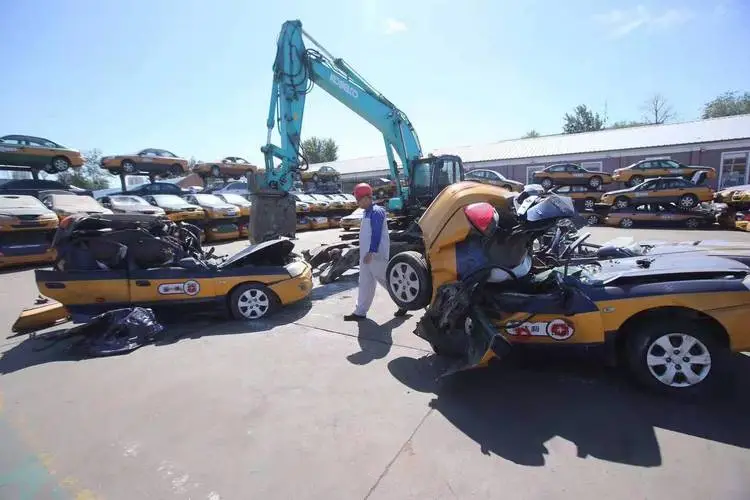 在道路上形式的汽车除了私家车最多之外,其次就属于出租车了,而出租车的使用年限是整个汽车报废行业来说最短的一个使用年限,只有8年的使用年限,因为出租车24小时不停的在道路上行驶,使用年限短也就可以理解了。万年车辆报废解体厂专业办理万年出租车报废,每天可报废拆解400台左右。